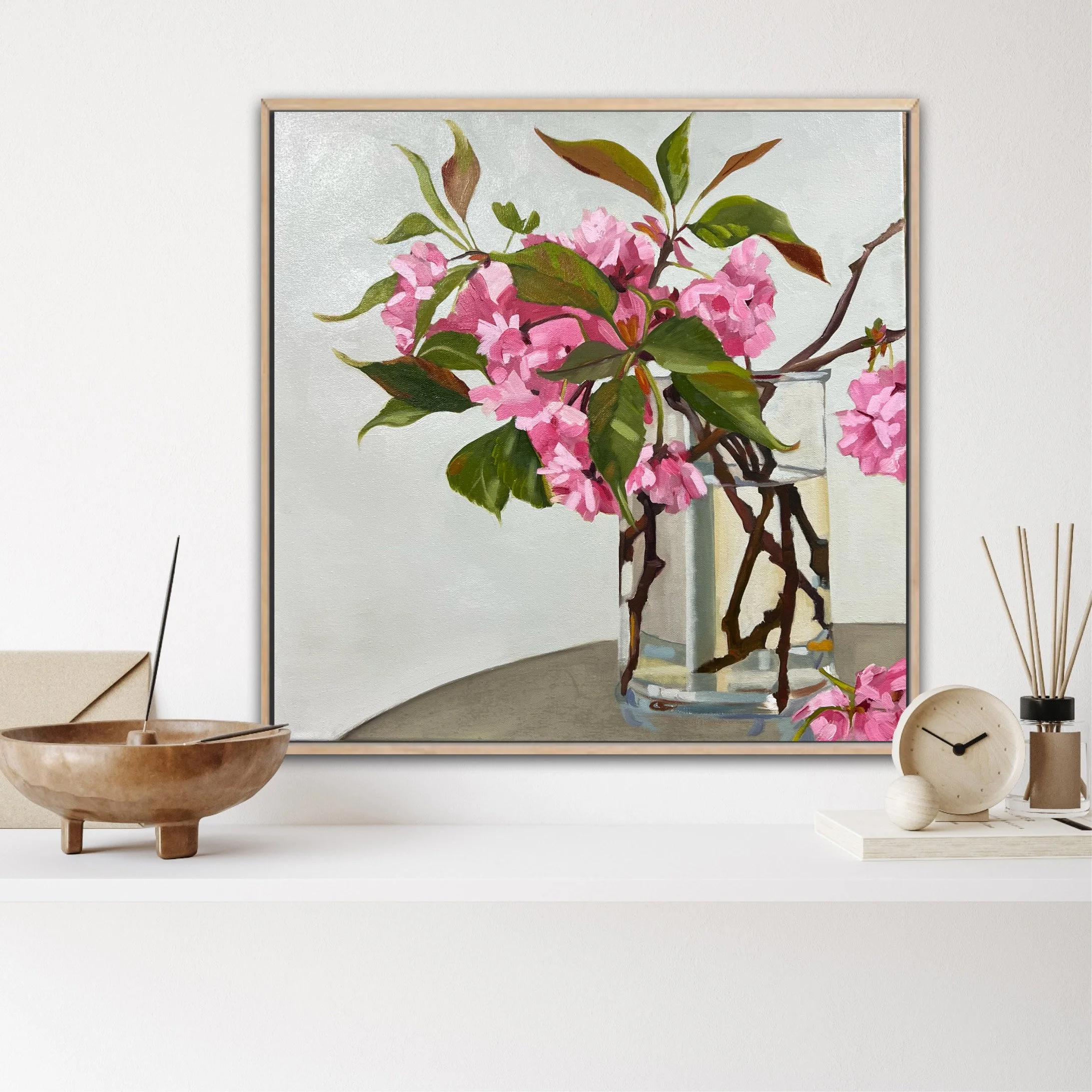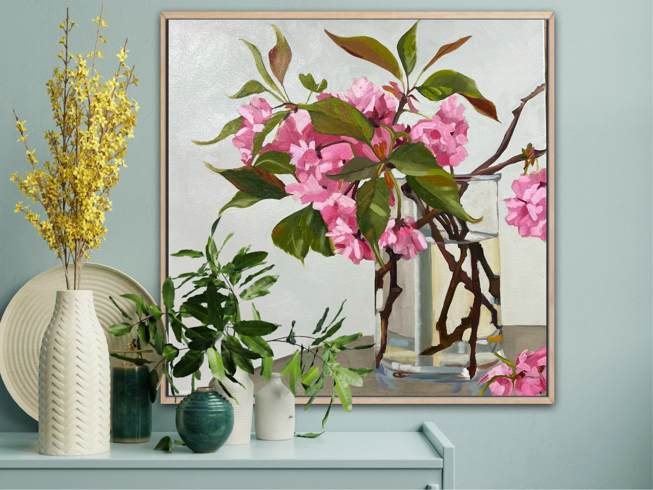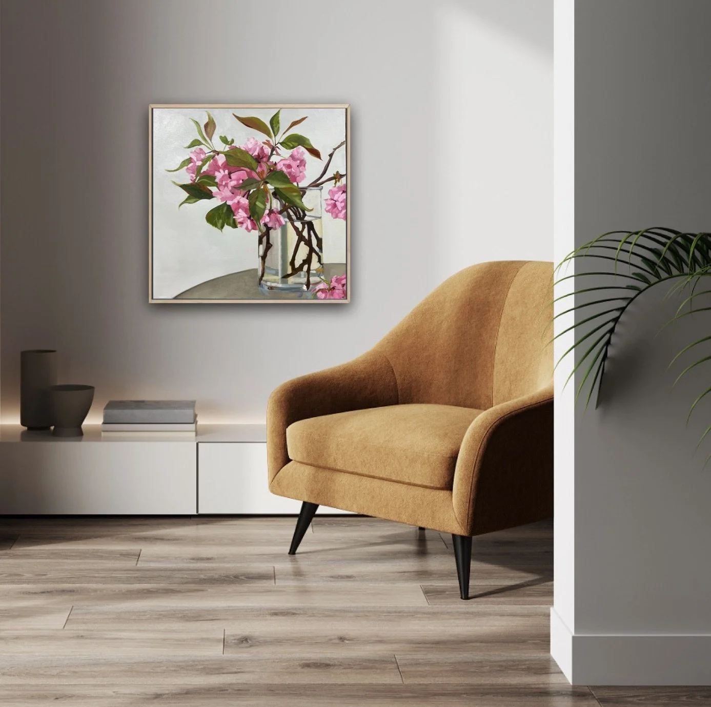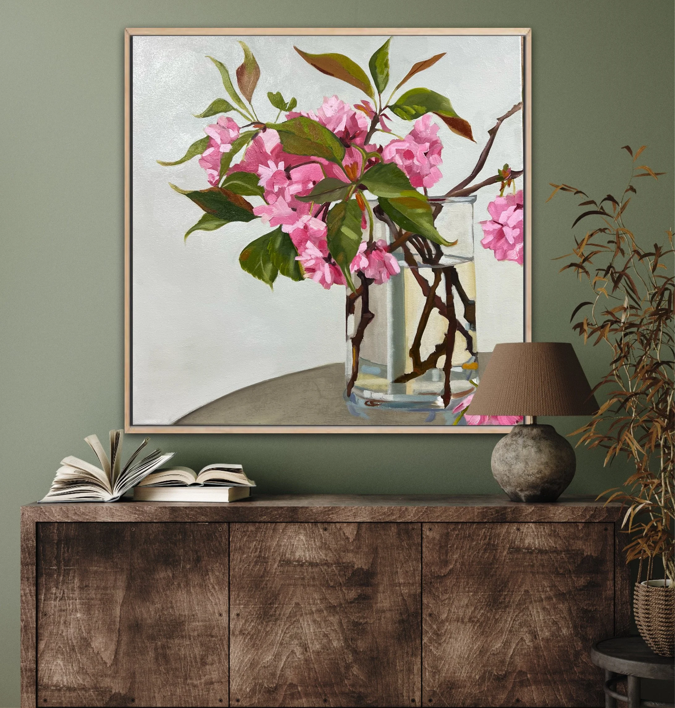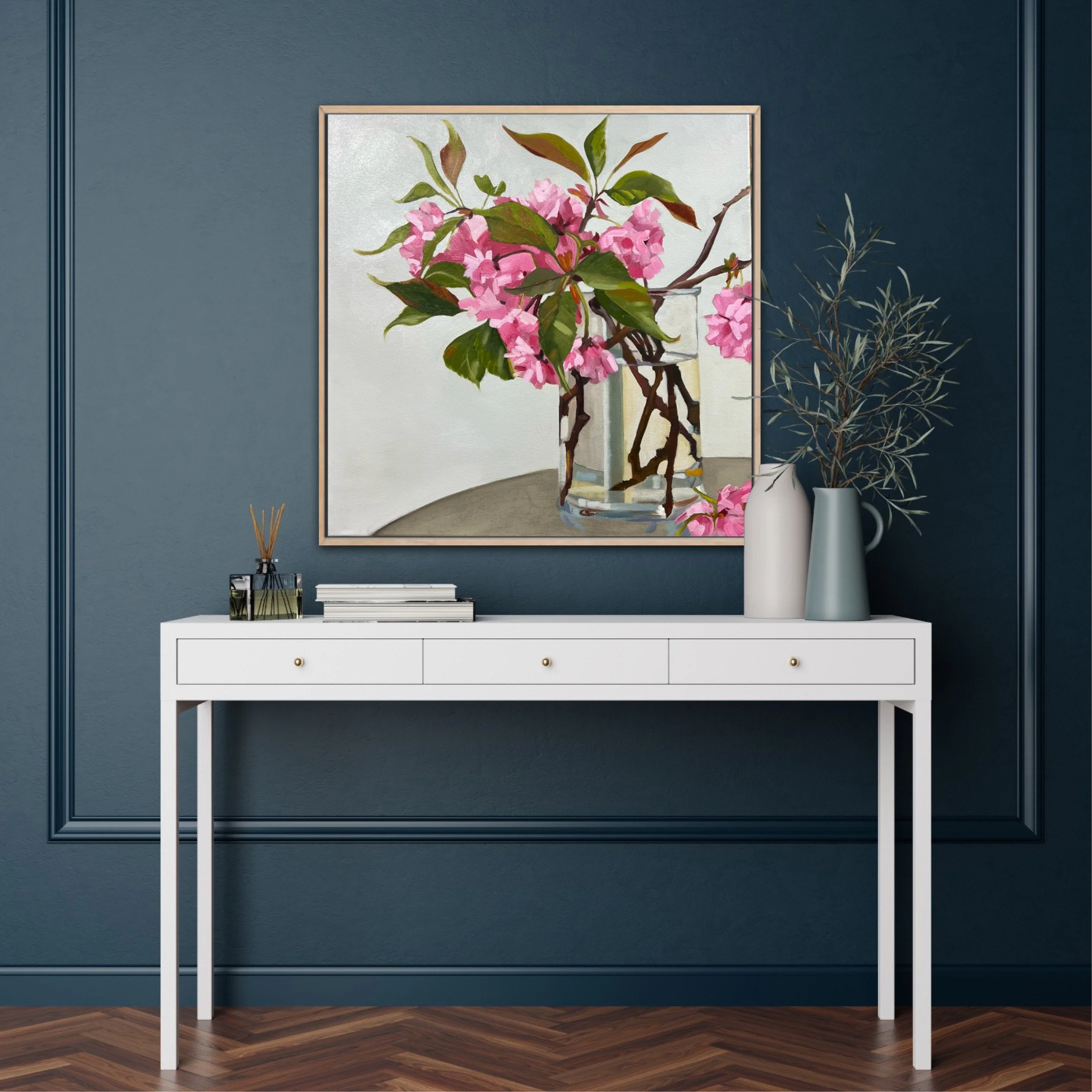 This painting is in oil on canvas and measures 50cm x 50cm.
